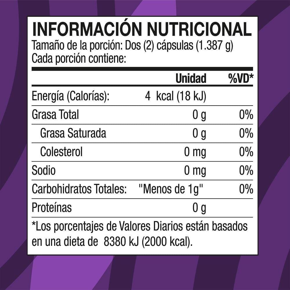 4 cápsulas diarias con 8 onzas de agua al día, preferiblemente 20 minutos antes de cada comida.